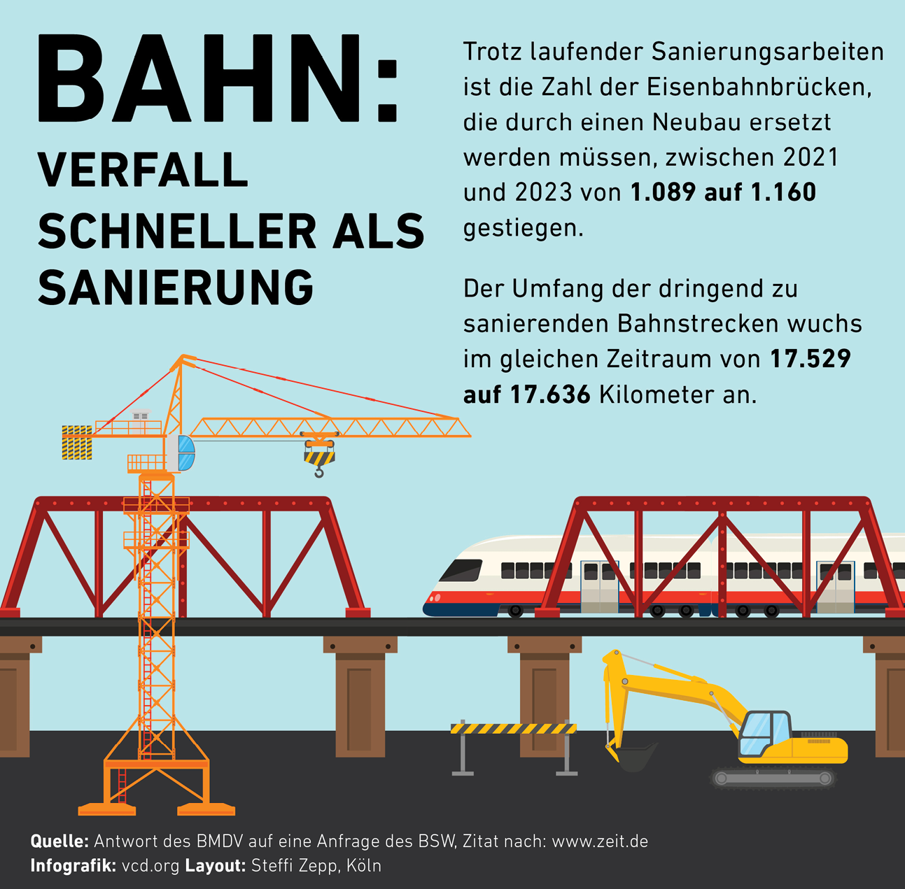 Es darf nicht vergessen werden, dass es das Bahnpersonal vor Ort und in den Stellwerken ist, welches dafür sorgt, dass überhaupt noch Züge fahren, dass doch noch rund 63,4 Prozent der Fernzüge und über 89 Prozent im Nahverkehr pünktlich sind. Vielen Dank vom VCD für den täglichen Einsatz in einem von der Bundesregierung – trotz beginnender Aufholjagd – extrem vernachlässigten Sektor.