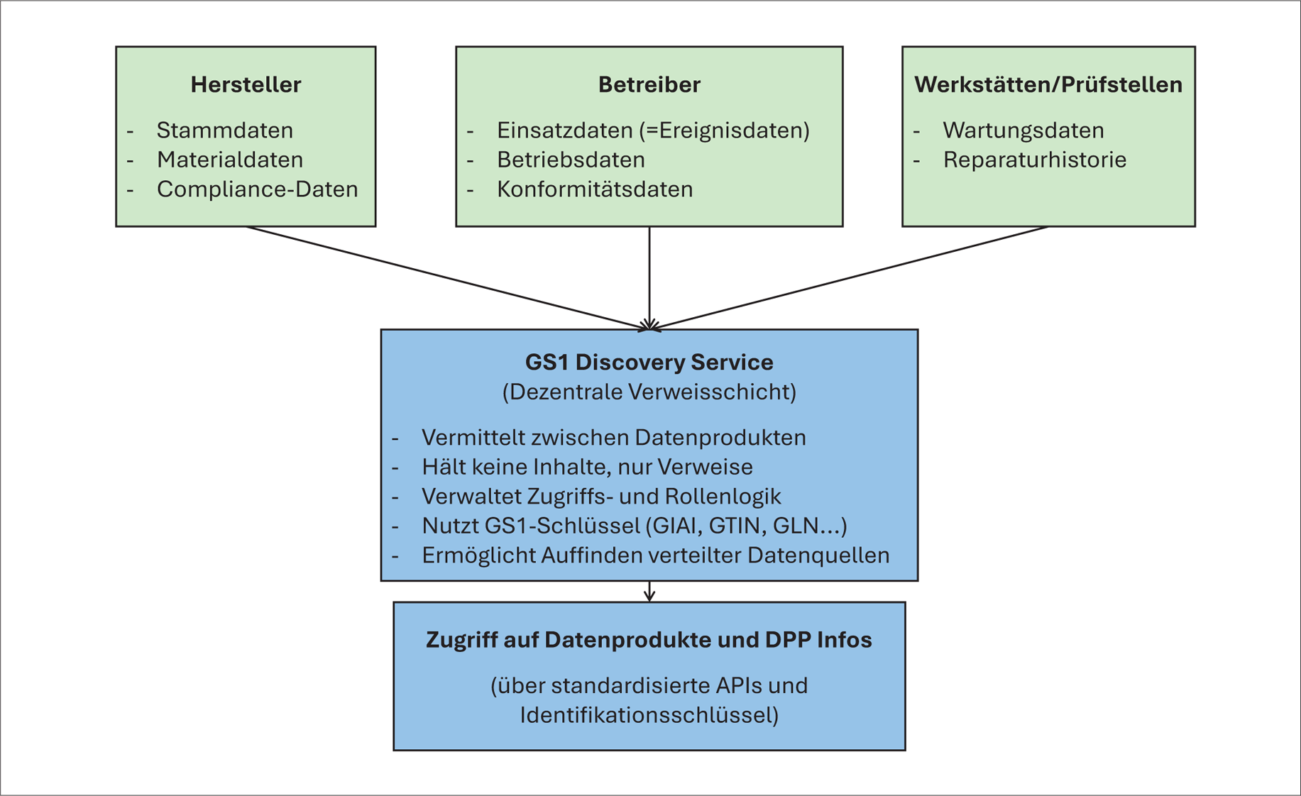 Nutzt die bereitgestellten Informationen (z. B. Werkstätten, Betreiber oder Prüfinstanzen). Diese Rollen schaffen die Grundlage für eine kontrollierte, regelbasierte Weitergabe technischer, produktbezogener Informationen.