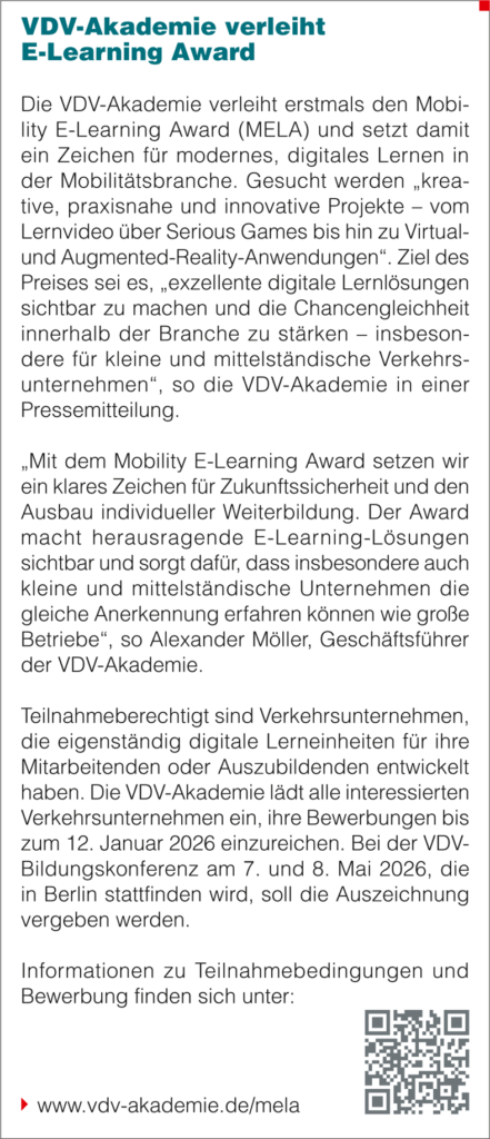 Außerdem informierten Matthias Rohrmann (AGV Move) über die Personalarbeit in der EU, Brendon Eggeling (DB Rail Academy) gab Einblicke in Optimierungsmöglichkeiten in Trainingsorganisationen, und Stefanie Menke (VDV-Akademie) zeigte Wege auf, wie die Unternehmen ihre Fahrpersonale unterstützen und zu deren Resilienz beitragen können.