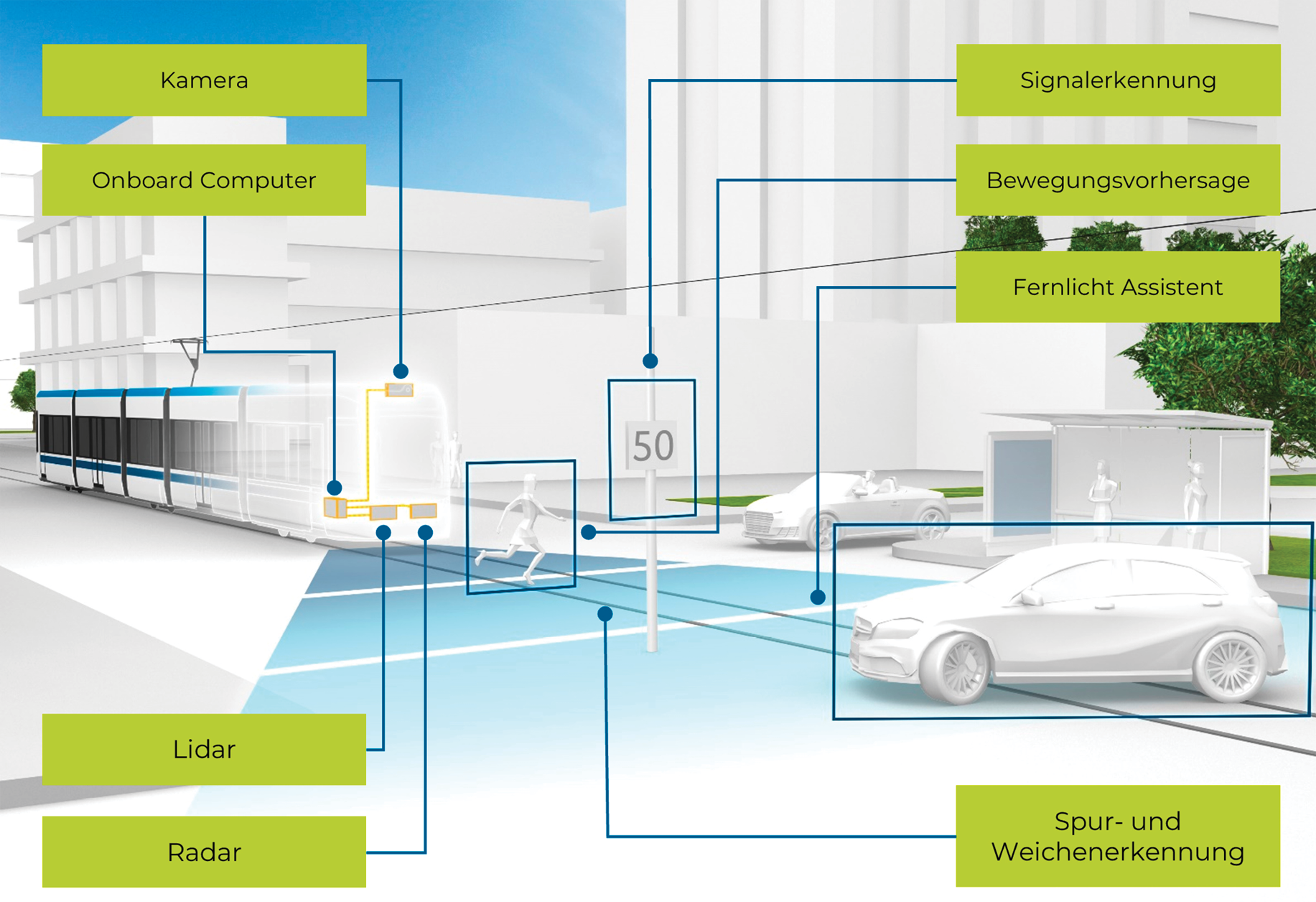 „Smart Sensing“, also das intelligente Auswerten von Zuständen in der direkten Umgebung, ist ein Trendthema dieser Zeit und eine wichtige Voraussetzung für hochautomatisiertes Fahren. Der folgende Beitrag soll Einblicke in die dazu verfügbare Technologie, aktuelle Trends und die Anwendung bei Stadt- und Regionalbahnen geben.